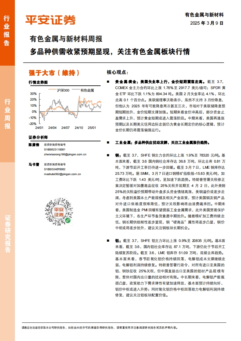 2025-03-10-平安證券--有色金屬與新材料周報(bào):多品種供需收緊預(yù)期顯現(xiàn),關(guān)注有色金屬板塊行情