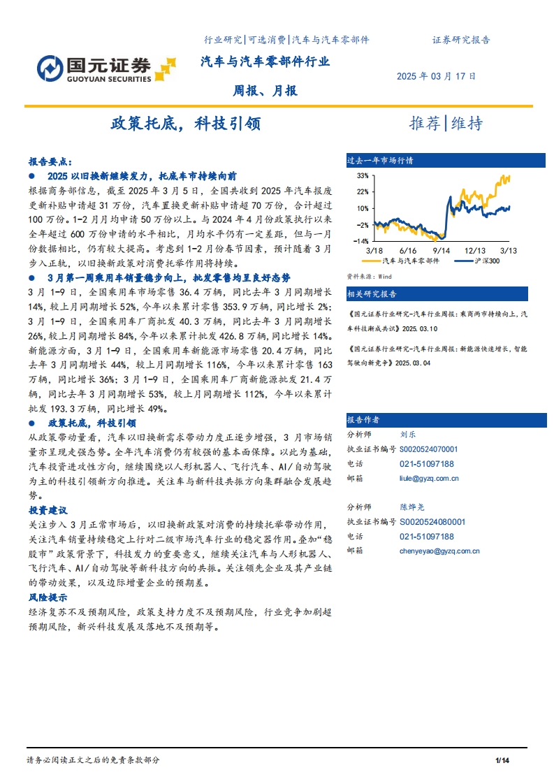 2025-03-17-國(guó)元證券--汽車(chē)與汽車(chē)零部件行業(yè)周報(bào)、月報(bào):政策托底,科技引領(lǐng)