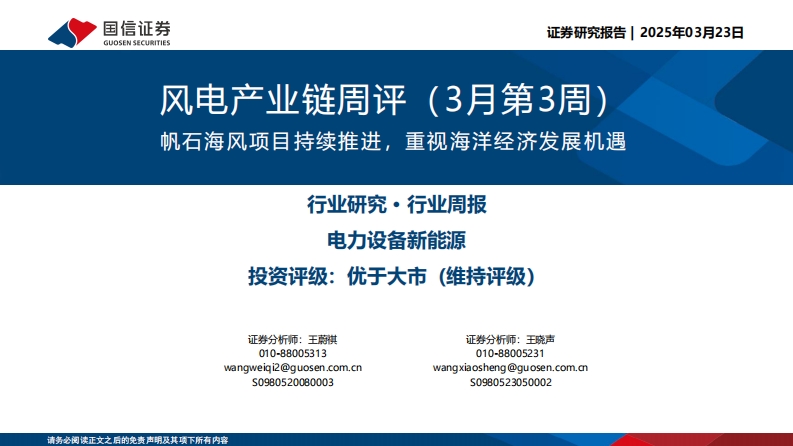 2025-03-23-國(guó)信證券-風(fēng)電產(chǎn)業(yè)鏈周評(píng)(3月第3周):帆石海風(fēng)項(xiàng)目持續(xù)推進(jìn),重視海洋經(jīng)濟(jì)發(fā)展機(jī)遇