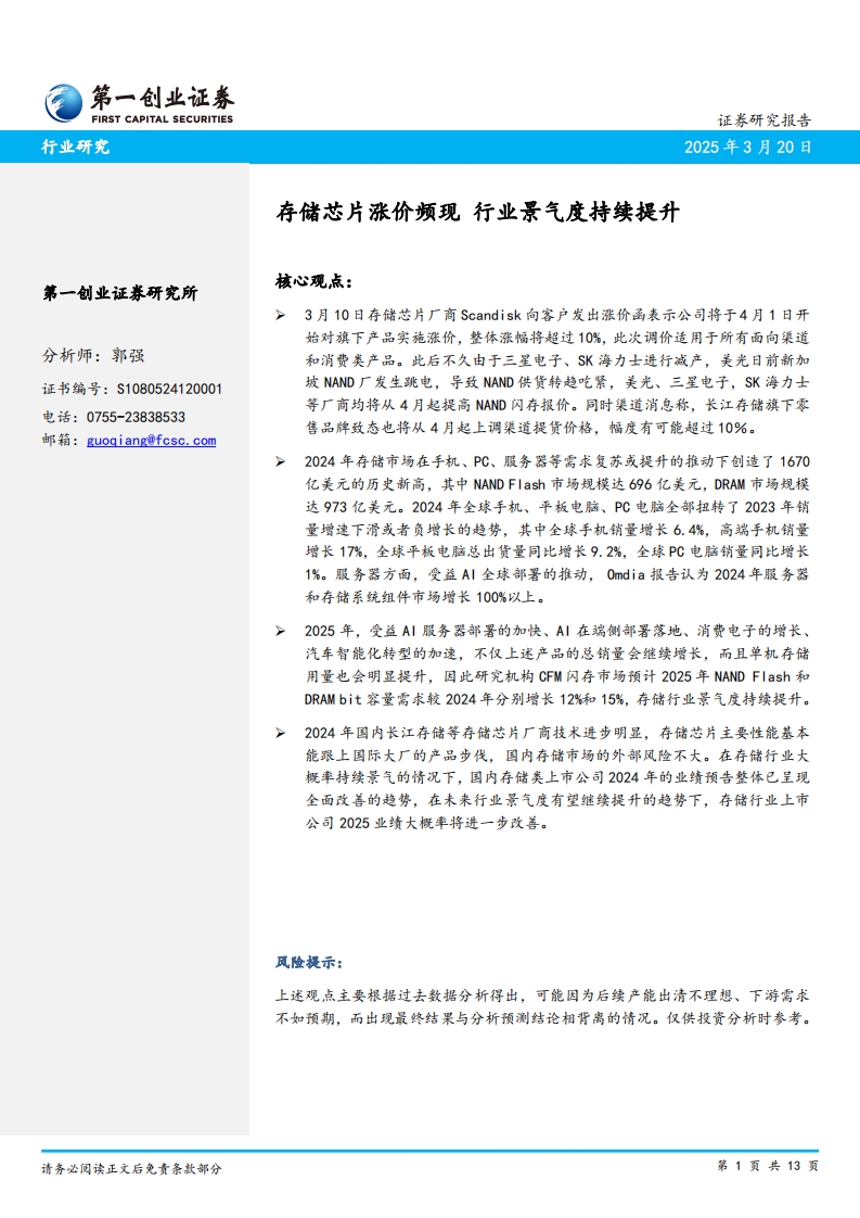 2025-03-28-第一創(chuàng)業(yè)--電子:存儲芯片漲價頻現(xiàn) 行業(yè)景氣度持續(xù)提升