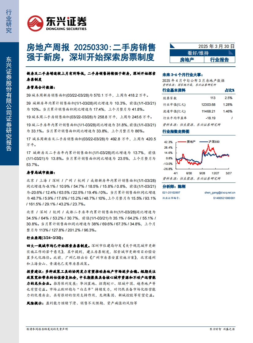 2025-03-31-東興證券-房地產(chǎn)行業(yè)周報(bào):二手房銷售強(qiáng)于新房,深圳開始探索房票制度