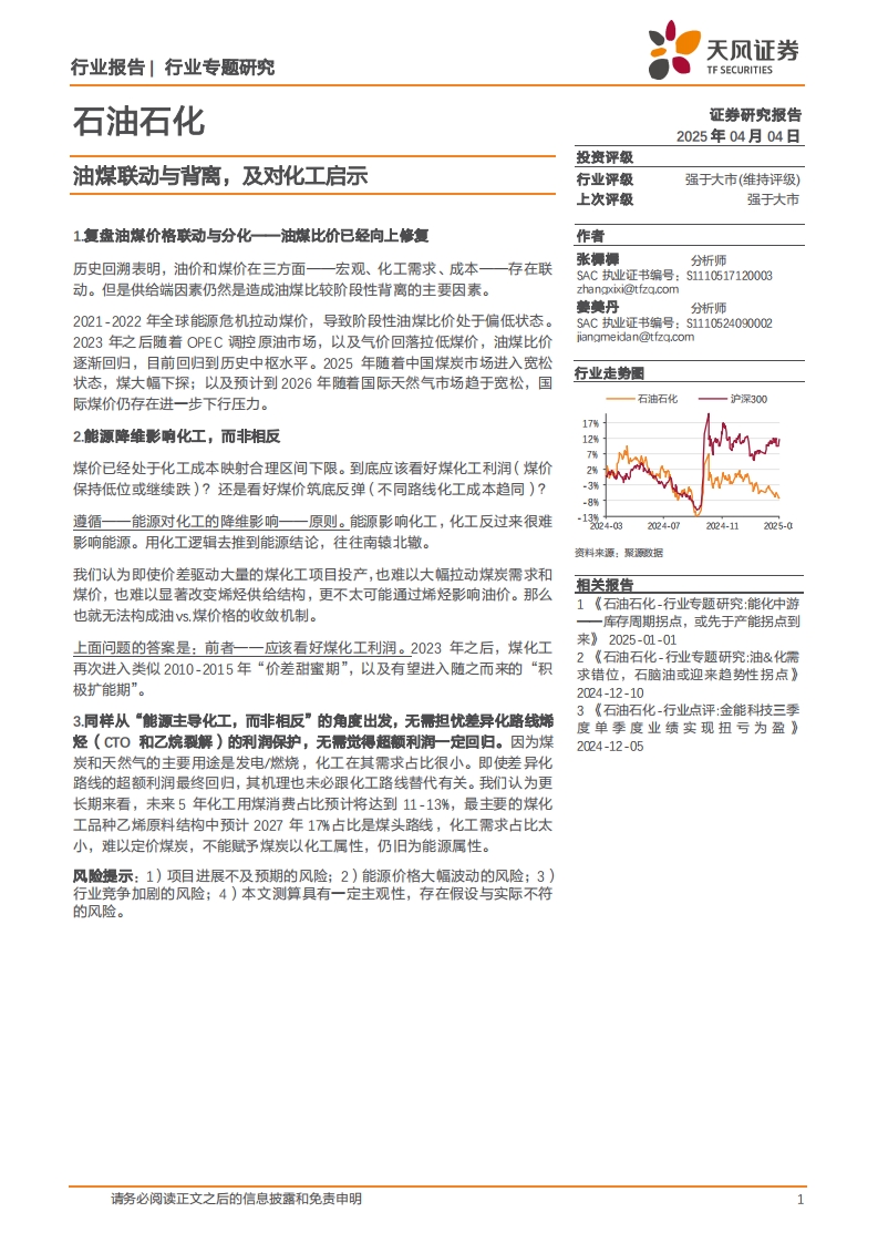2025-04-06-天風(fēng)證券--石油石化行業(yè)專題研究:油煤聯(lián)動與背離,及對化工啟示