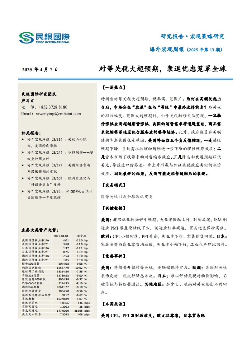 2025-04-13-民銀證券-海外宏觀周報(2025年第13期):對等關(guān)稅大超預期,衰退憂慮籠罩全球