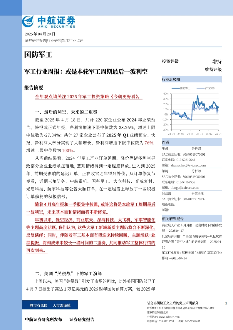 2025-04-21-中航證券--軍工行業(yè)周報:或是本輪軍工周期最后一波利空