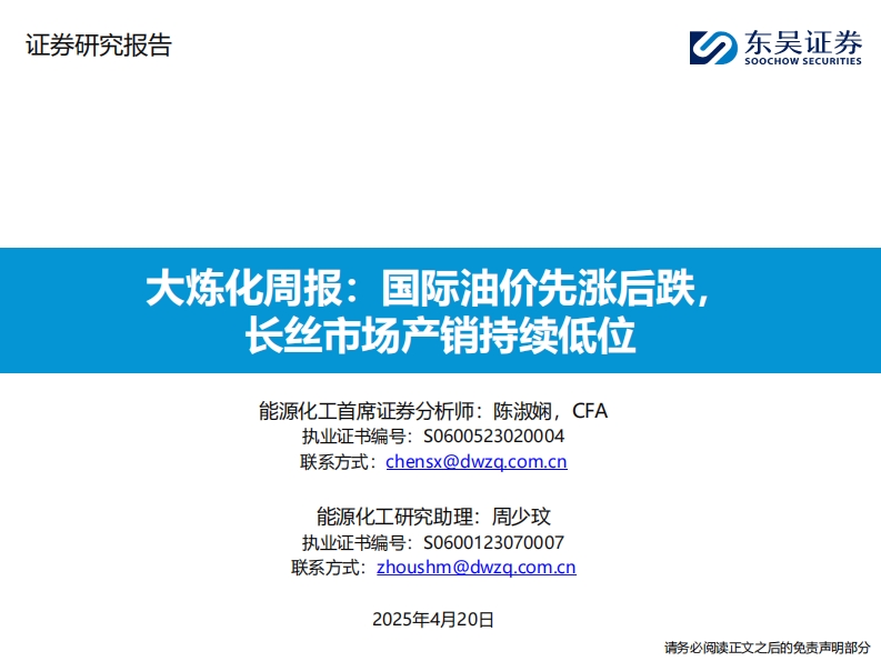 2025-04-20-東吳證券--石油化工行業(yè)大煉化周報(bào):國際油價(jià)先漲后跌,長絲市場產(chǎn)銷持續(xù)低位