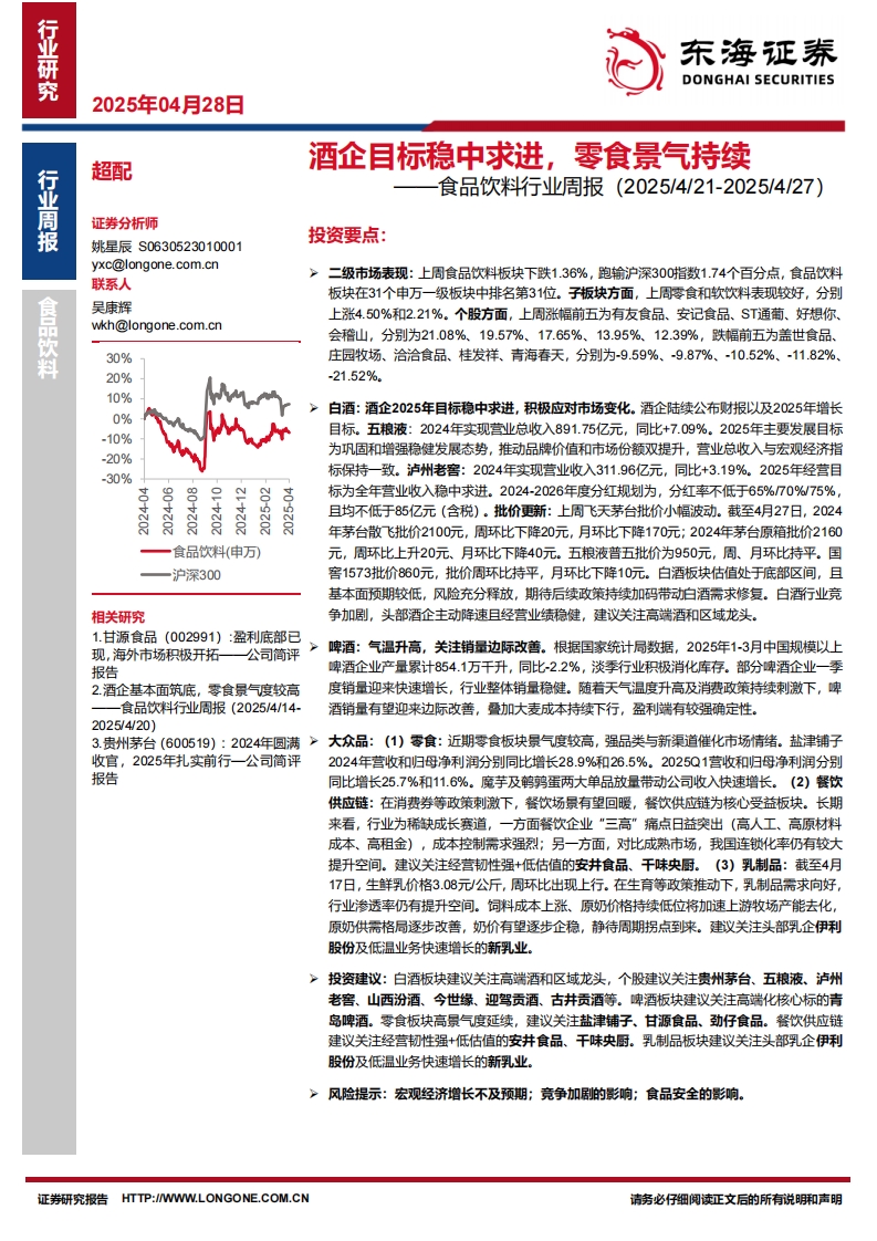 2025-04-29-東海證券-食品飲料行業(yè)周報(bào):酒企目標(biāo)穩(wěn)中求進(jìn),零食景氣持續(xù)