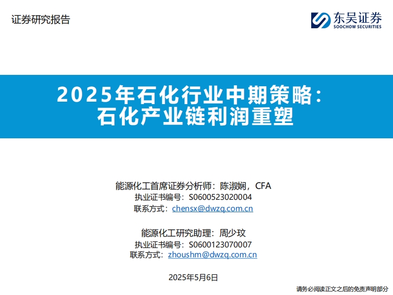 2025-05-06-東吳證券-2025年石化行業(yè)中期策略:石化產(chǎn)業(yè)鏈利潤重塑