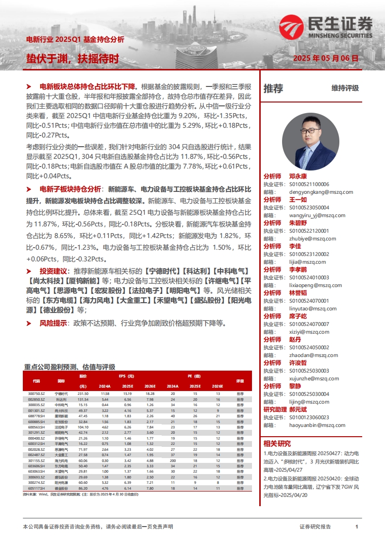 2025-05-06-民生證券--電新行業(yè)2025Q1基金持倉分析:蟄伏于淵,扶搖待時