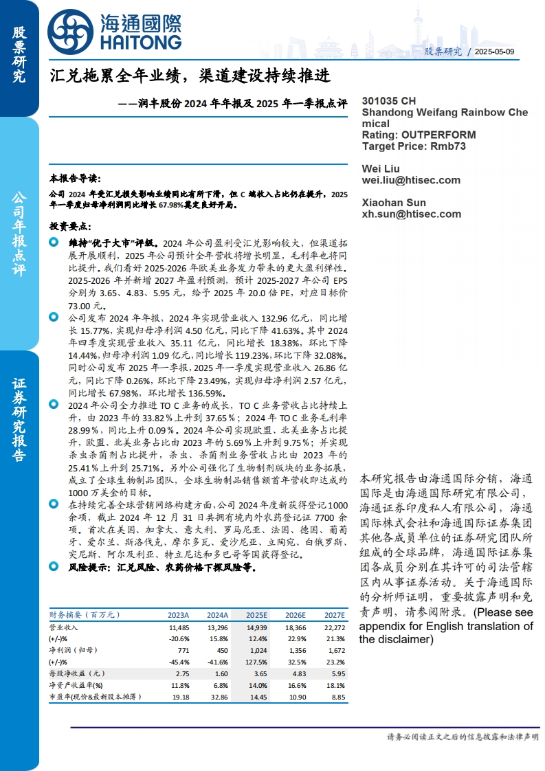 2025-05-09-海通國(guó)際-潤(rùn)豐股份-潤(rùn)豐股份2024年年報(bào)及2025年一季報(bào)點(diǎn)評(píng):匯兌拖累全年業(yè)績(jī),渠道建設(shè)持續(xù)推進(jìn)