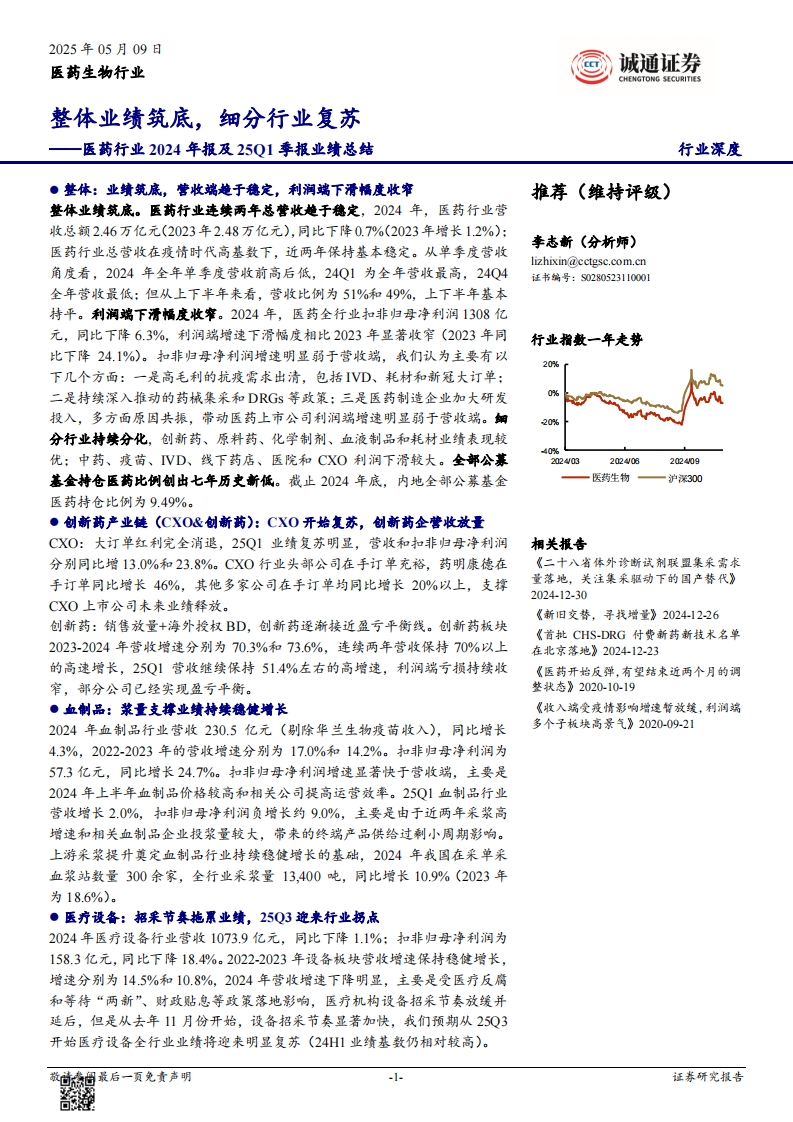2025-05-09-誠通證券--醫(yī)藥行業(yè)2024年報及25Q1季報業(yè)績總結(jié):整體業(yè)績筑底,細(xì)分行業(yè)復(fù)蘇