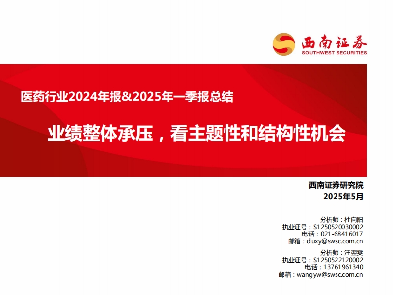 2025-05-14-西南證券--醫(yī)藥行業(yè)2024年報(bào)&2025年一季報(bào)總結(jié):業(yè)績(jī)整體承壓,看主題性和結(jié)構(gòu)性機(jī)會(huì)