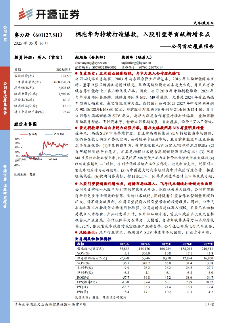 2025-05-19-開源證券-賽力斯-公司首次覆蓋報告:擁抱華為持續(xù)打造爆款,入股引望等貢獻新增長點