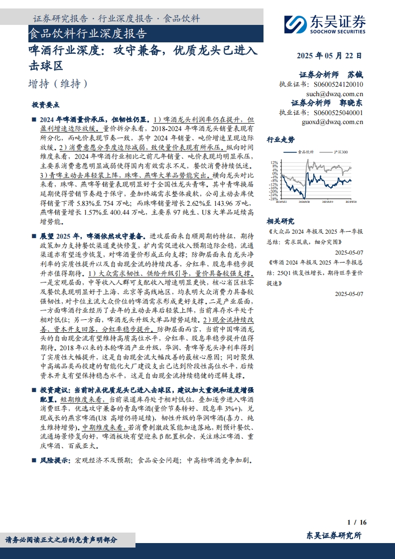 2025-05-22-東吳證券-啤酒行業(yè)深度:攻守兼?zhèn)?,?yōu)質(zhì)龍頭已進(jìn)入擊球區(qū)
