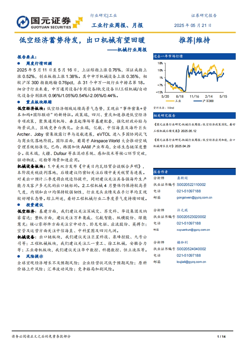 2025-05-22-國(guó)元證券--機(jī)械行業(yè)周報(bào):低空經(jīng)濟(jì)蓄勢(shì)待發(fā),出口機(jī)械有望回暖