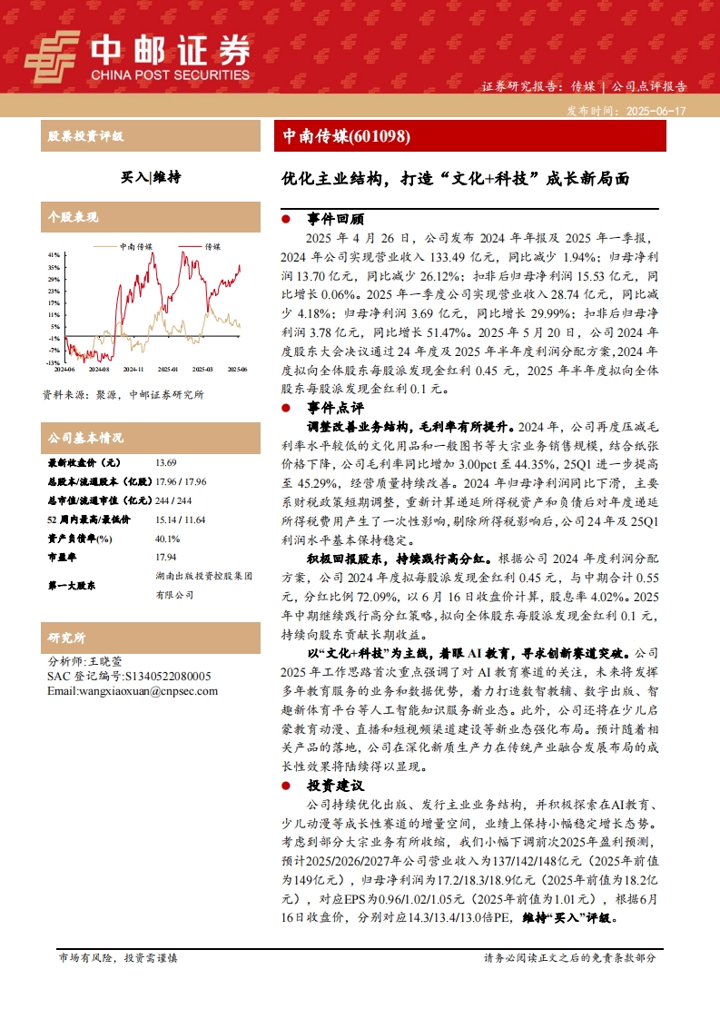 2025-06-17-中郵證券-中南傳媒-優(yōu)化主業(yè)結(jié)構(gòu),打造“文化+科技”成長新局面