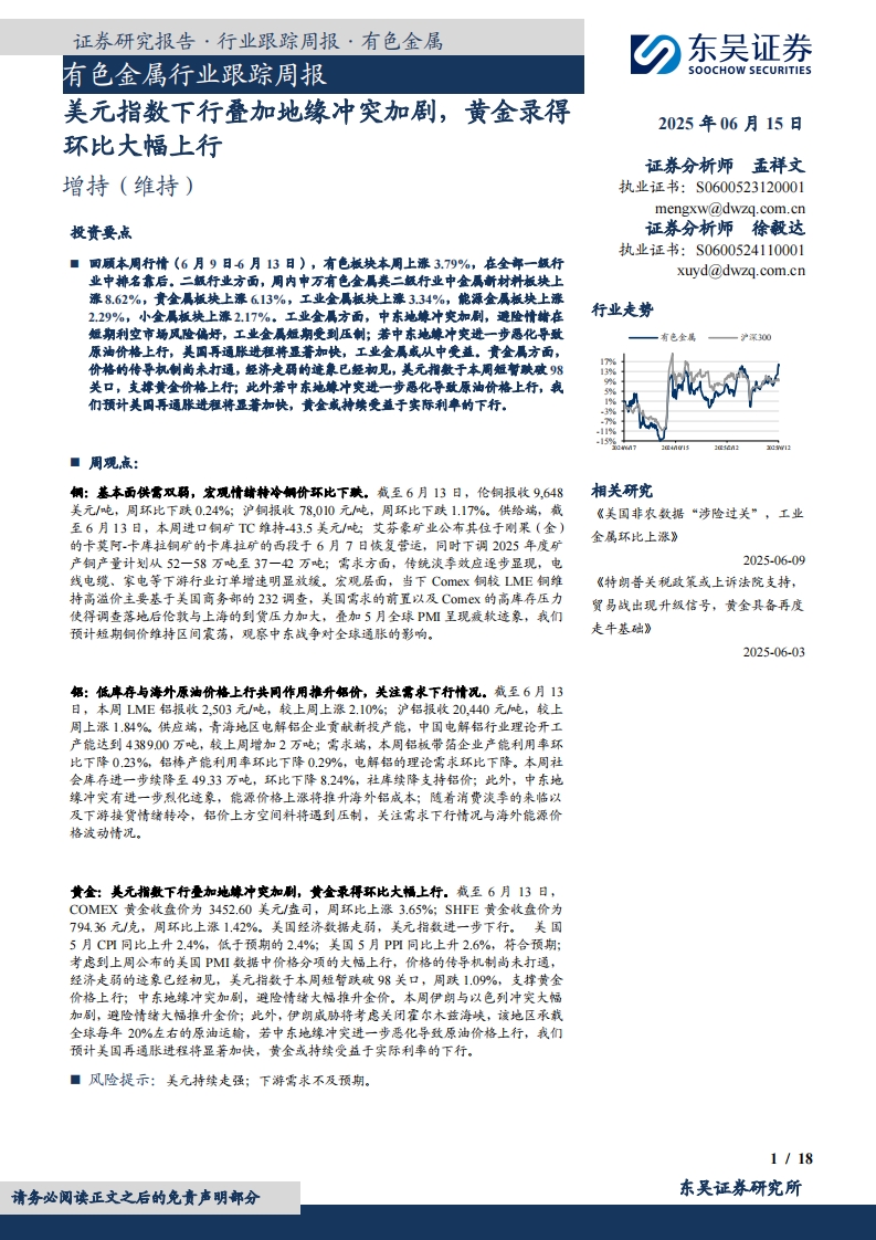 2025-06-15-東吳證券-有色金屬行業(yè)跟蹤周報(bào):美元指數(shù)下行疊加地緣沖突加劇,黃金錄得環(huán)比大幅上行
