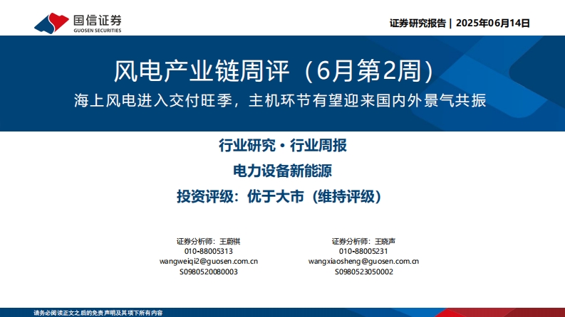 2025-06-15-國信證券--風(fēng)電產(chǎn)業(yè)鏈周評(6月第2周):海上風(fēng)電進(jìn)入交付旺季,主機(jī)環(huán)節(jié)有望迎來國內(nèi)外景氣共振