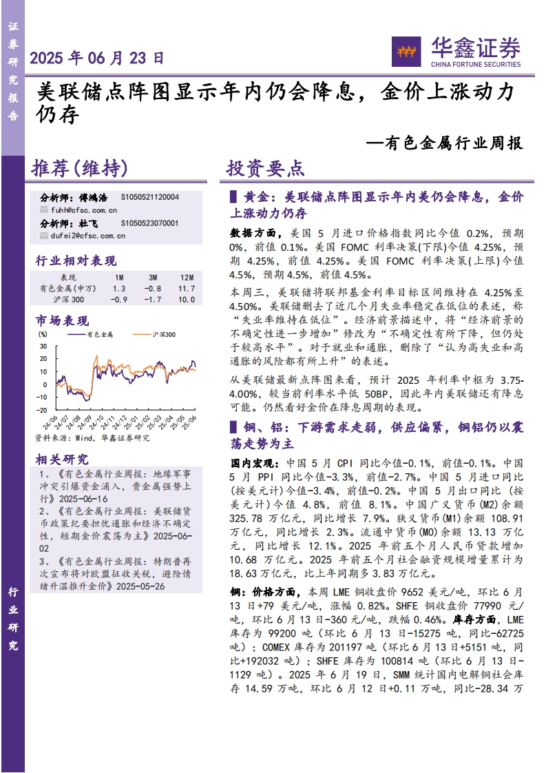 2025-06-23-華鑫證券--有色金屬行業(yè)周報(bào):美聯(lián)儲(chǔ)點(diǎn)陣圖顯示年內(nèi)仍會(huì)降息,金價(jià)上漲動(dòng)力仍存