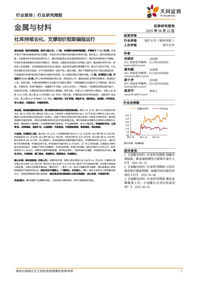 2025-06-22-天風證券-金屬與材料行業(yè)研究周報:社庫持續(xù)去化,支撐鋁價短期偏強運行