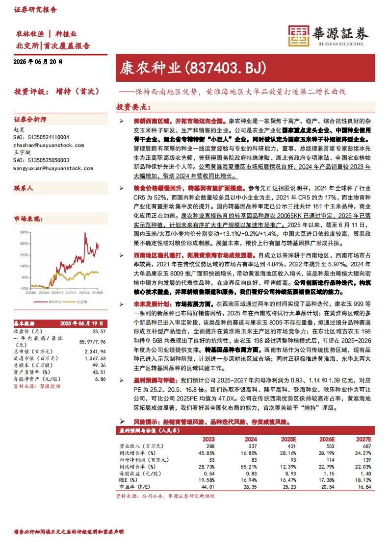 2025-06-20-華源證券-康農(nóng)種業(yè)-保持西南地區(qū)優(yōu)勢,黃淮海地區(qū)大單品放量打造第二增長曲線