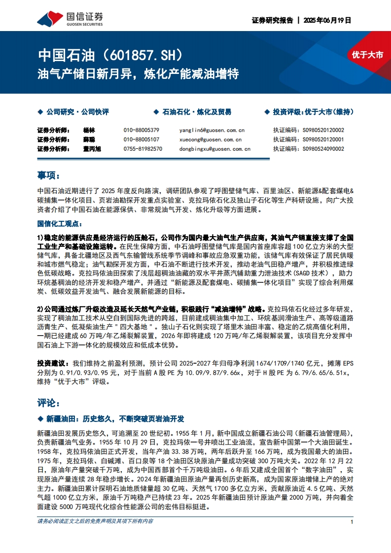 2025-06-20-國信證券-中國石油-油氣產(chǎn)儲日新月異,煉化產(chǎn)能減油增特