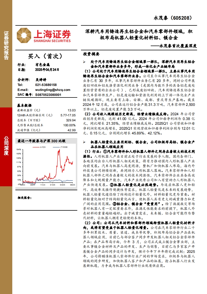 2025-06-25-上海證券-永茂泰-永茂泰首次覆蓋深度:深耕汽車用鑄造再生鋁合金和汽車零部件領(lǐng)域,積極布局機器人輕量化材料鋁、鎂合金