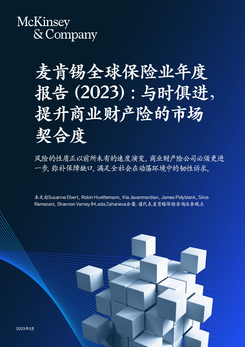 麥肯錫全球保險業(yè)年度報告(2023):與時俱進(jìn),提升商業(yè)財產(chǎn)險的市場契合度