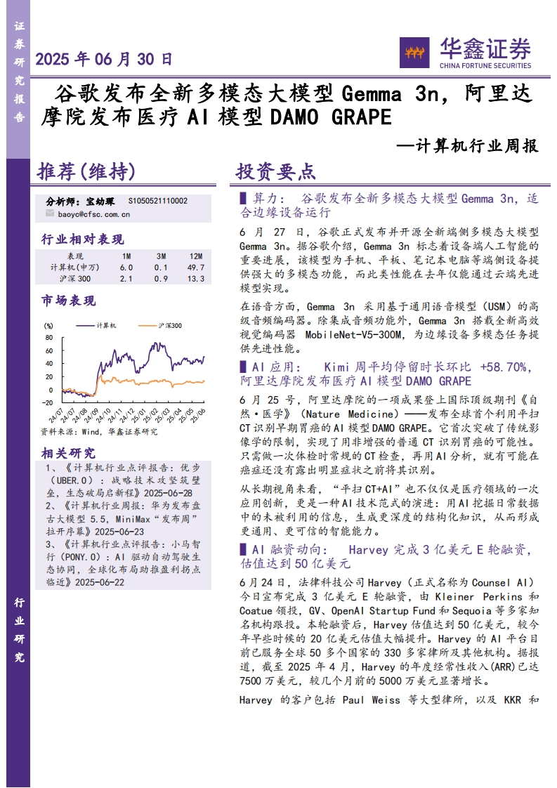 2025-06-30-華鑫證券--計(jì)算機(jī)行業(yè)周報(bào):谷歌發(fā)布全新多模態(tài)大模型Gemma 3n,阿里達(dá)摩院發(fā)布醫(yī)療AI模型DAMOGRAPE