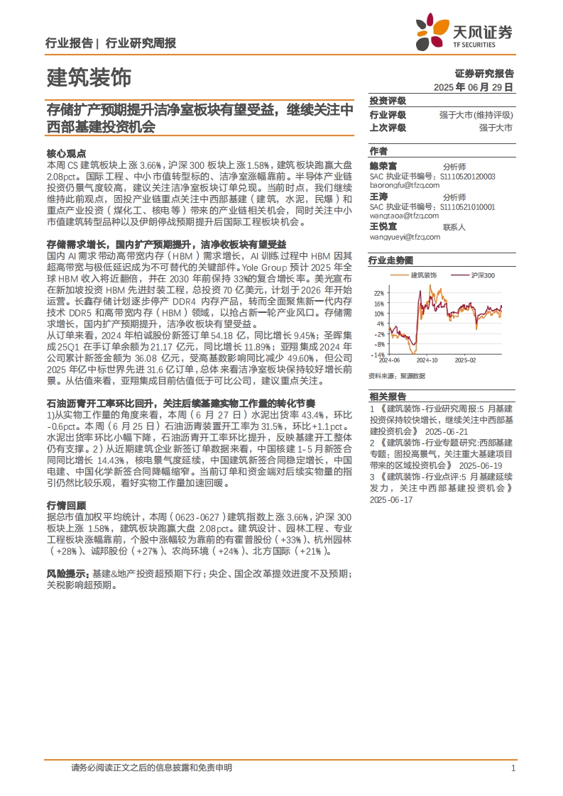 2025-06-29-天風(fēng)證券--建筑裝飾行業(yè)研究周報:存儲擴產(chǎn)預(yù)期提升潔凈室板塊有望受益,繼續(xù)關(guān)注中西部基建投資機會