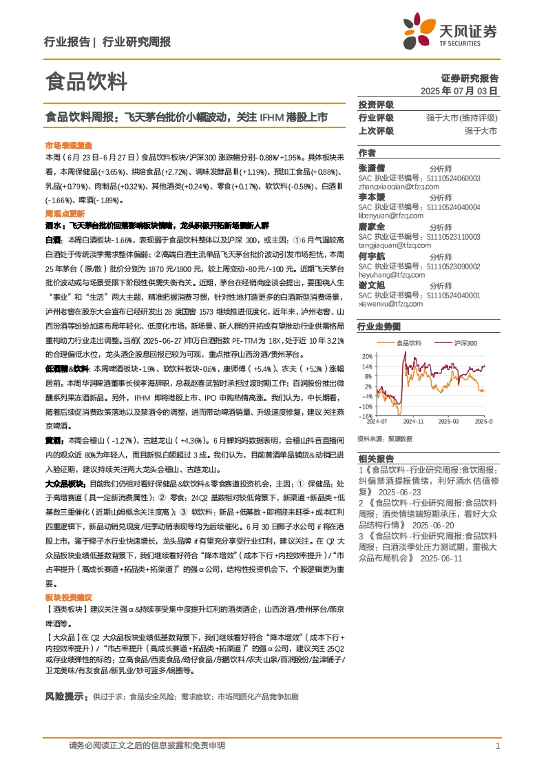 2025-07-03-天風(fēng)證券--食品飲料行業(yè)周報:飛天茅臺批價小幅波動,關(guān)注IFHM港股上市