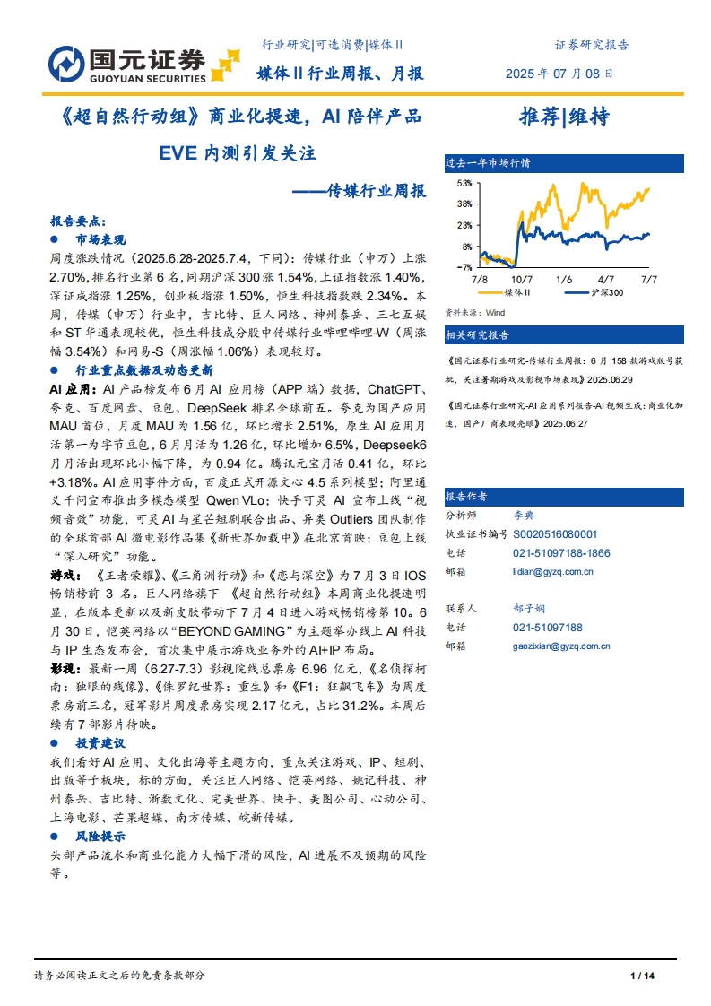 2025-07-08-國(guó)元證券--傳媒行業(yè)周報(bào):《超自然行動(dòng)組》商業(yè)化提速,AI陪伴產(chǎn)品EVE內(nèi)測(cè)引發(fā)關(guān)注