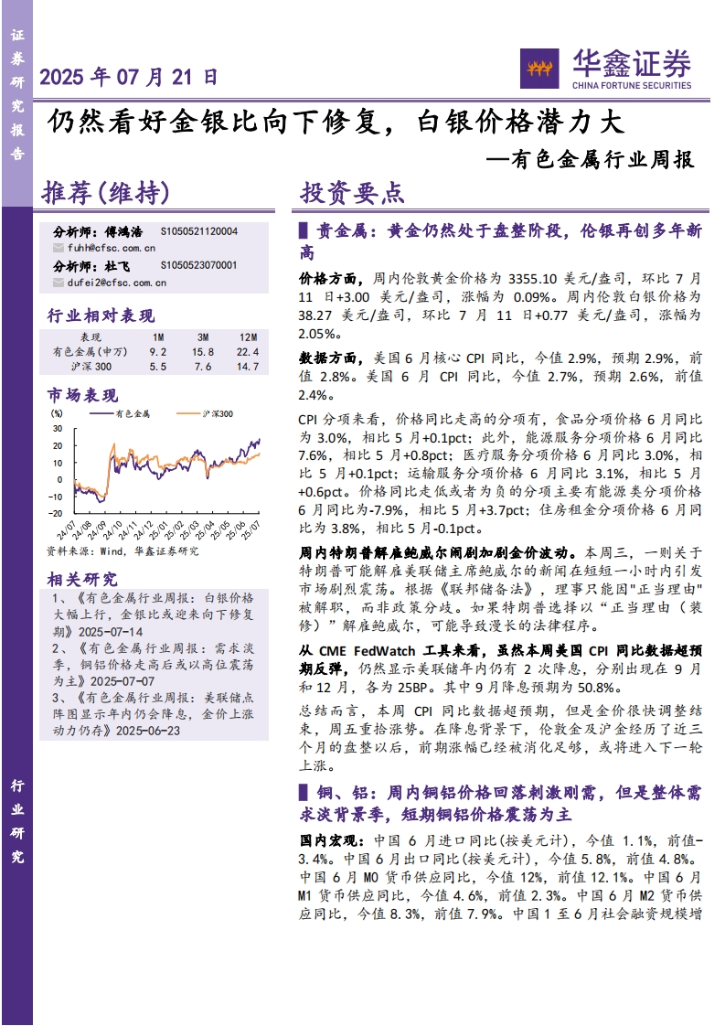 2025-07-21-華鑫證券--有色金屬行業(yè)周報(bào):仍然看好金銀比向下修復(fù),白銀價(jià)格潛力大