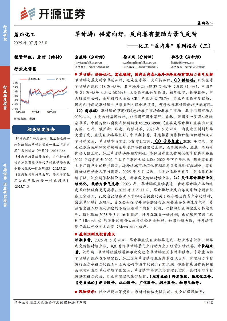 2025-07-23-開源證券--化工“反內(nèi)卷”系列報告(三):草甘膦:供需向好,反內(nèi)卷有望助力景氣反轉(zhuǎn)