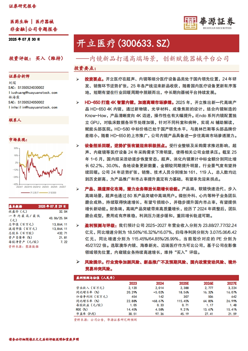 2025-07-30-華源證券-開(kāi)立醫(yī)療-內(nèi)鏡新品打通高端場(chǎng)景,創(chuàng)新賦能器械平臺(tái)公司