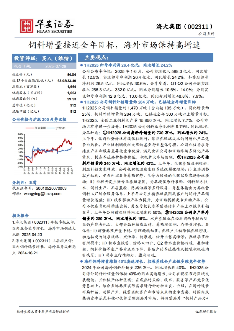 2025-07-29-華安證券-海大集團(tuán)-飼料增量接近全年目標(biāo),海外市場保持高增速
