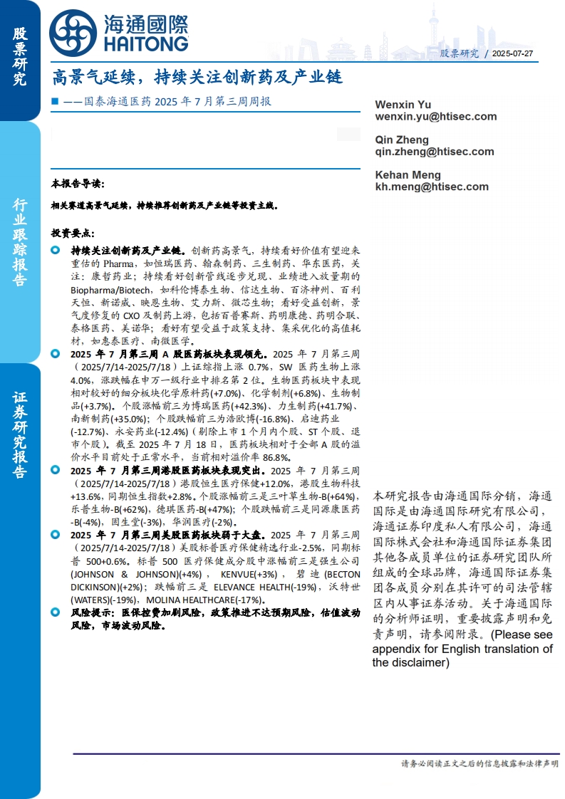 2025-08-11-海通國(guó)際:醫(yī)藥行業(yè)2025年7月第三周周報(bào):高景氣延續(xù),持續(xù)關(guān)注創(chuàng)新藥及產(chǎn)業(yè)鏈