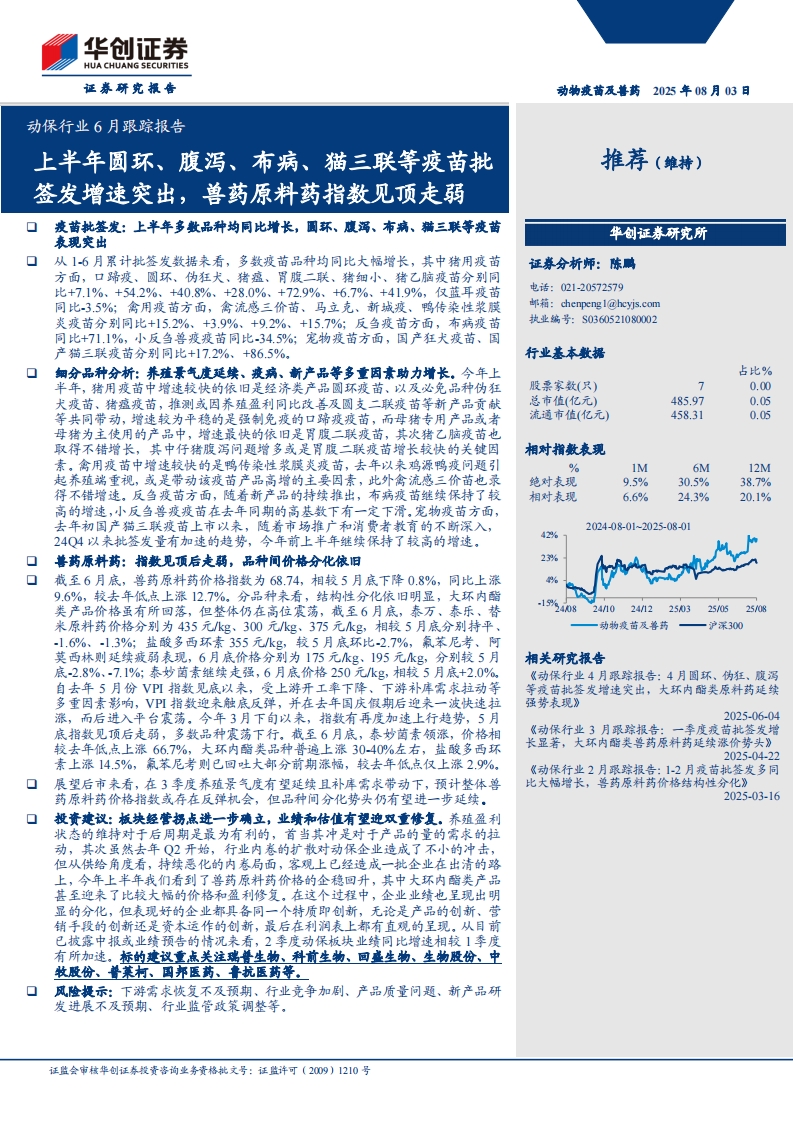 2025-08-13-華創(chuàng)證券:動保行業(yè)6月跟蹤報告:上半年圓環(huán)、腹瀉、布病、貓三聯(lián)等疫苗批簽發(fā)增速突出,獸藥原料藥指數(shù)見頂走弱
