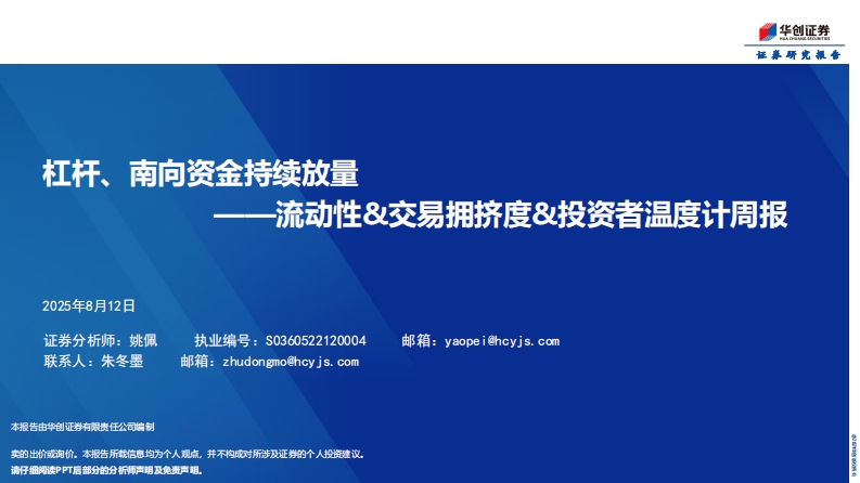 2025-08-16-華創(chuàng)證券:流動性、交易擁擠度、投資者溫度計周報:杠桿、南向資金持續(xù)放量