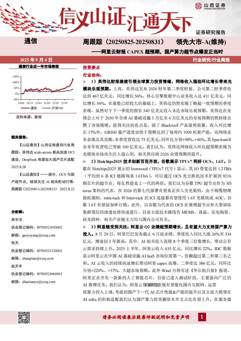 2025-09-05-山西證券--通信行業(yè)周跟蹤:阿里云財(cái)報(bào)CAPEX超預(yù)期,國(guó)產(chǎn)算力超節(jié)點(diǎn)爆發(fā)正當(dāng)時(shí)