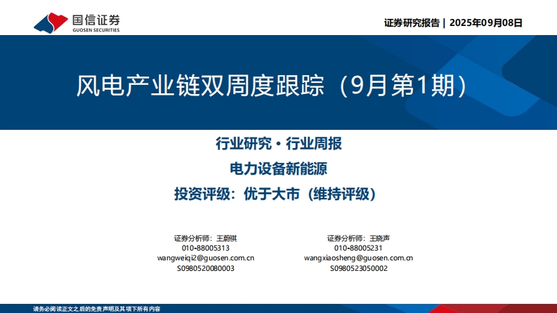 2025-09-08-國信證券--風(fēng)電產(chǎn)業(yè)鏈雙周度跟蹤(9月第1期)