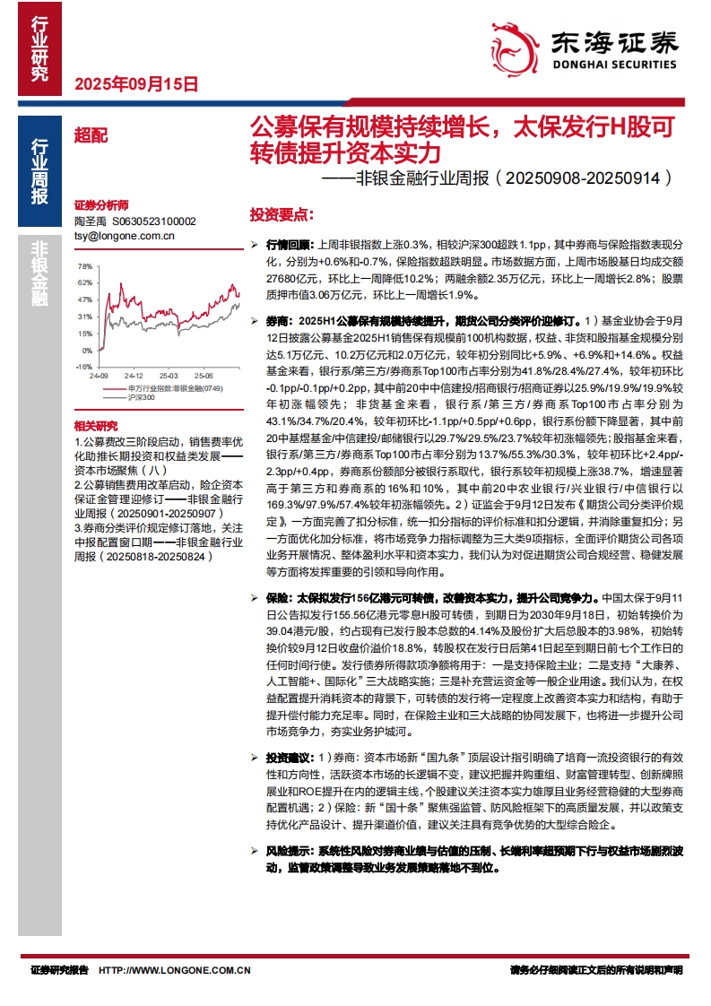 2025-09-15-東海證券--非銀金融行業(yè)周報:公募保有規(guī)模持續(xù)增長,太保發(fā)行H股可轉(zhuǎn)債提升資本實力