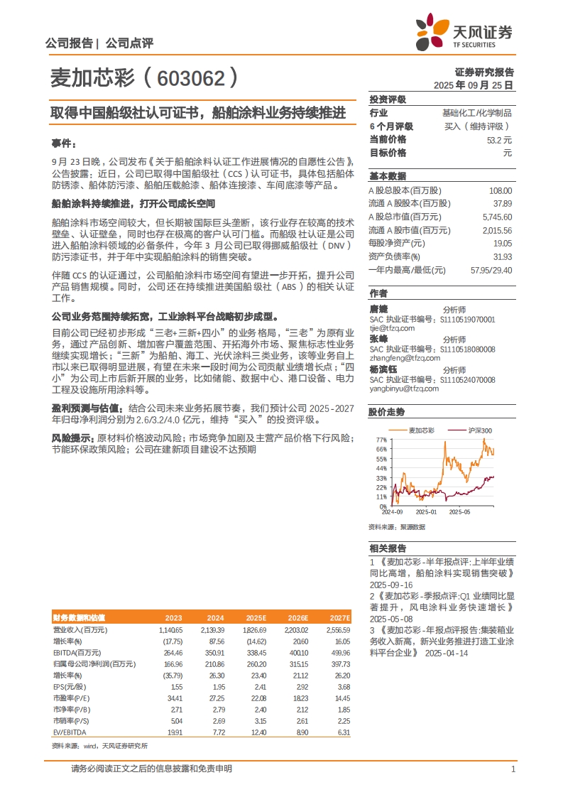 2025-09-25-天風(fēng)證券-麥加芯彩-取得中國船級社認(rèn)可證書,船舶涂料業(yè)務(wù)持續(xù)推進(jìn)