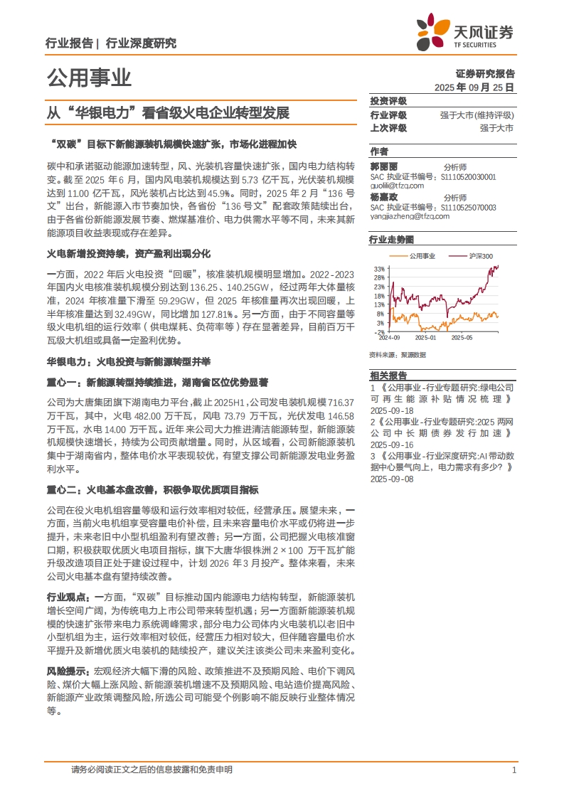 2025-09-25-天風(fēng)證券--公用事業(yè)行業(yè)深度研究:從“華銀電力”看省級(jí)火電企業(yè)轉(zhuǎn)型發(fā)展