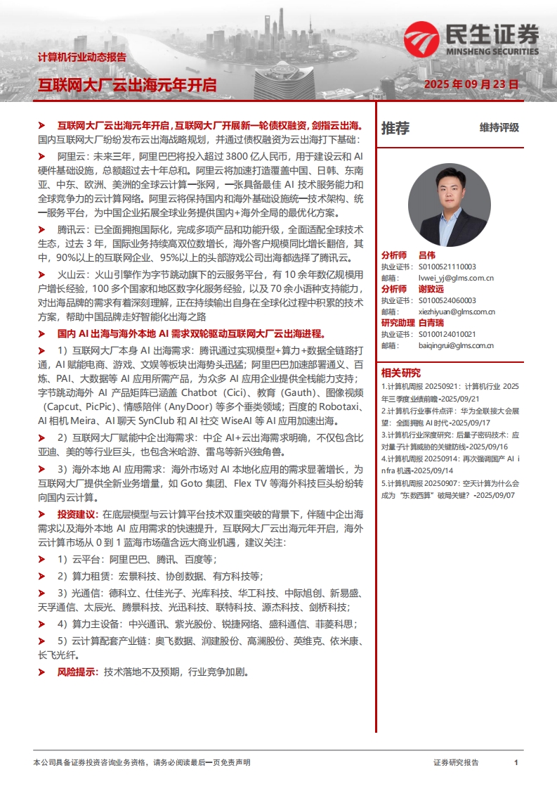 2025-09-23-民生證券--計算機(jī)行業(yè)動態(tài):互聯(lián)網(wǎng)大廠云出海元年開啟
