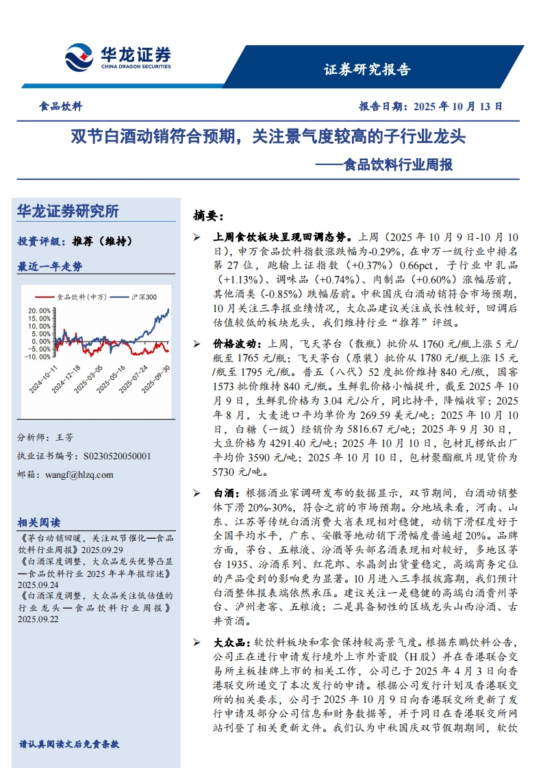 2025-10-13-華龍證券--食品飲料行業(yè)周報(bào):雙節(jié)白酒動(dòng)銷符合預(yù)期,關(guān)注景氣度較高的子行業(yè)龍頭