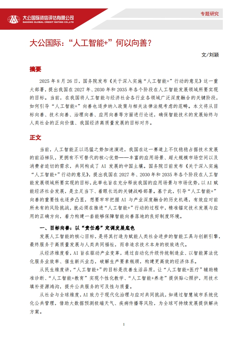 2025-10-16-大公國際資信評估--人工智能行業(yè):“人工智能+”何以向善?