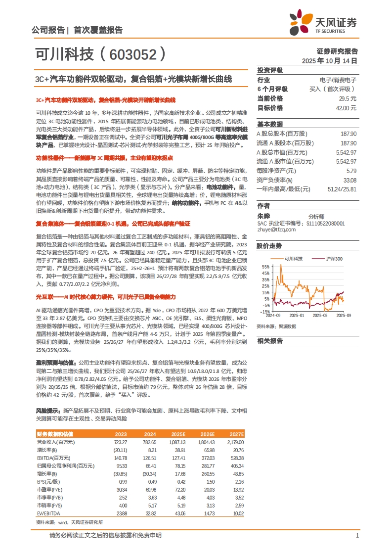2025-10-14-天風(fēng)證券-可川科技-3C+汽車功能件雙輪驅(qū)動,復(fù)合鋁箔+光模塊新增長曲線