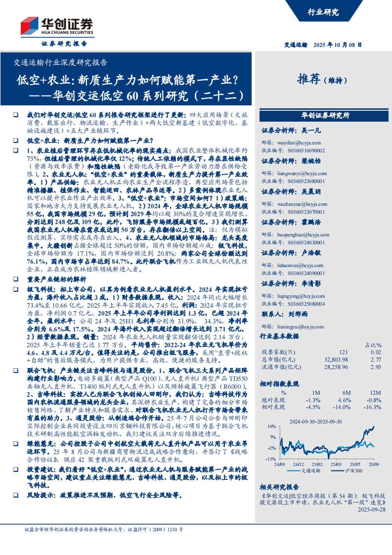 華創(chuàng)交運(yùn)低空60系列研究(二十二):低空+農(nóng)業(yè):新質(zhì)生產(chǎn)力如何賦能第一產(chǎn)業(yè)?