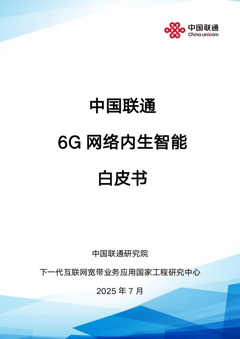 中國聯(lián)通6G網(wǎng)絡(luò)內(nèi)生智能白皮書