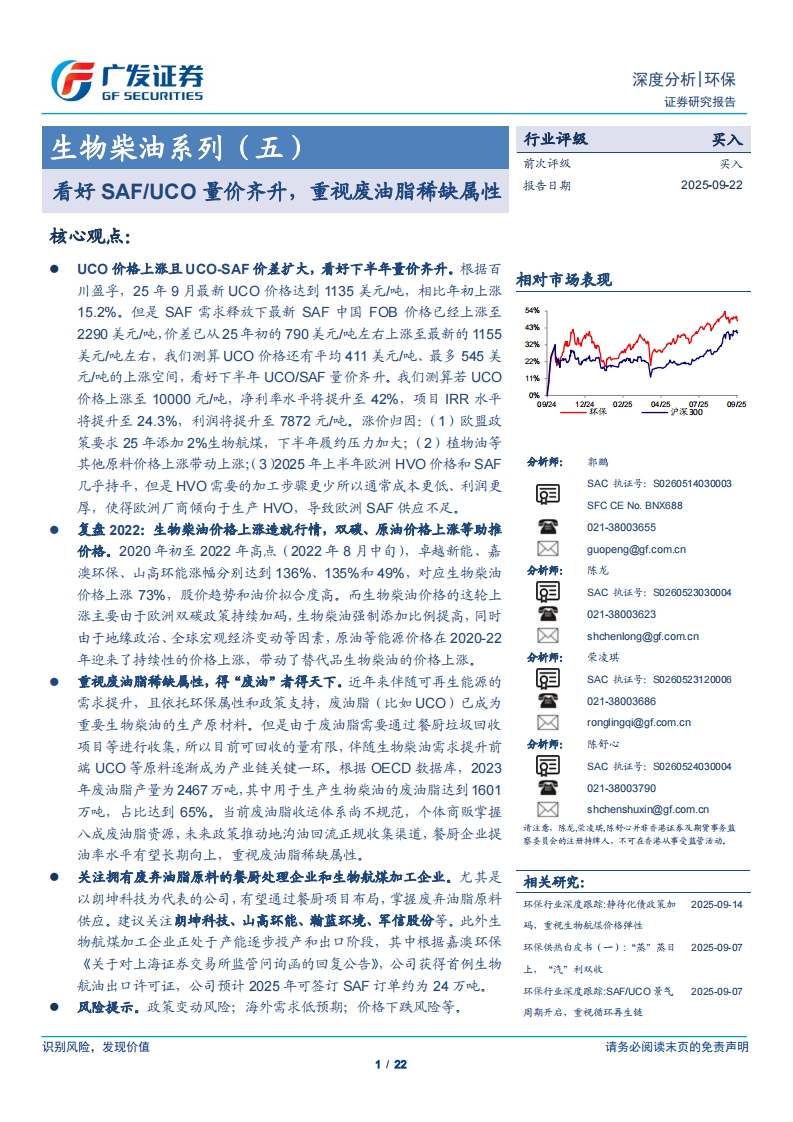 生物柴油系列(五):看好SAF_UCO量價齊升,重視廢油脂稀缺屬性